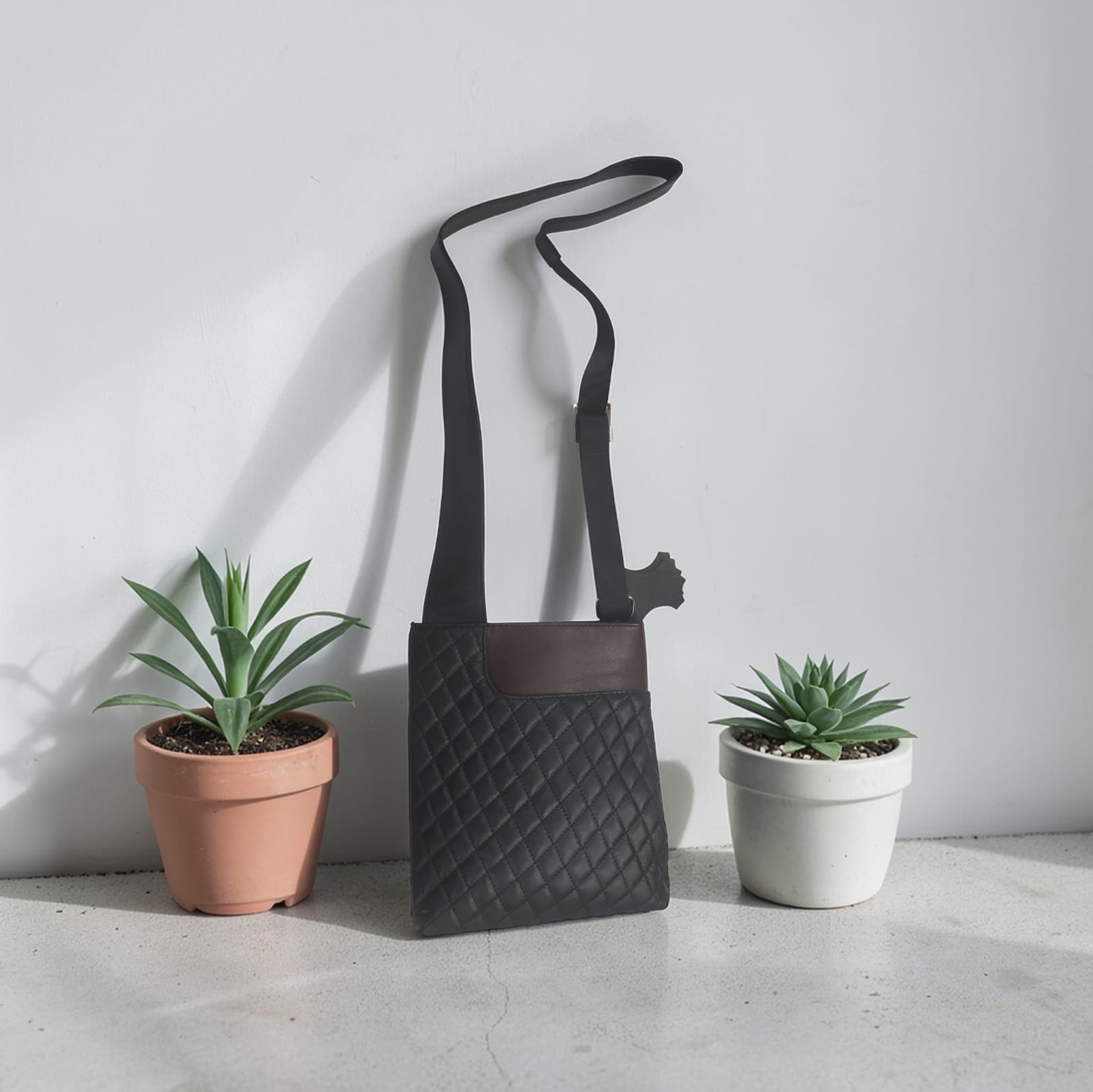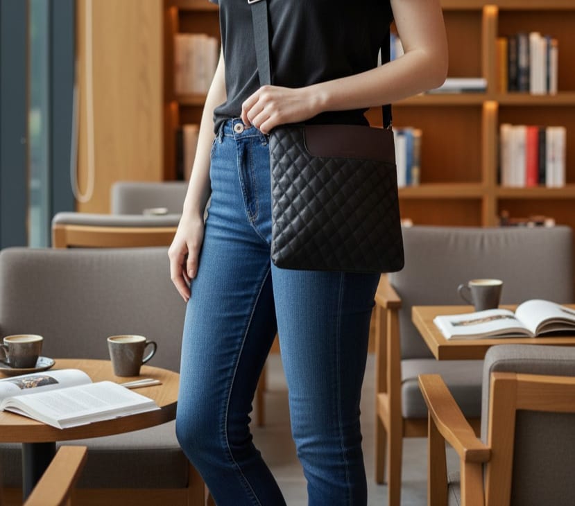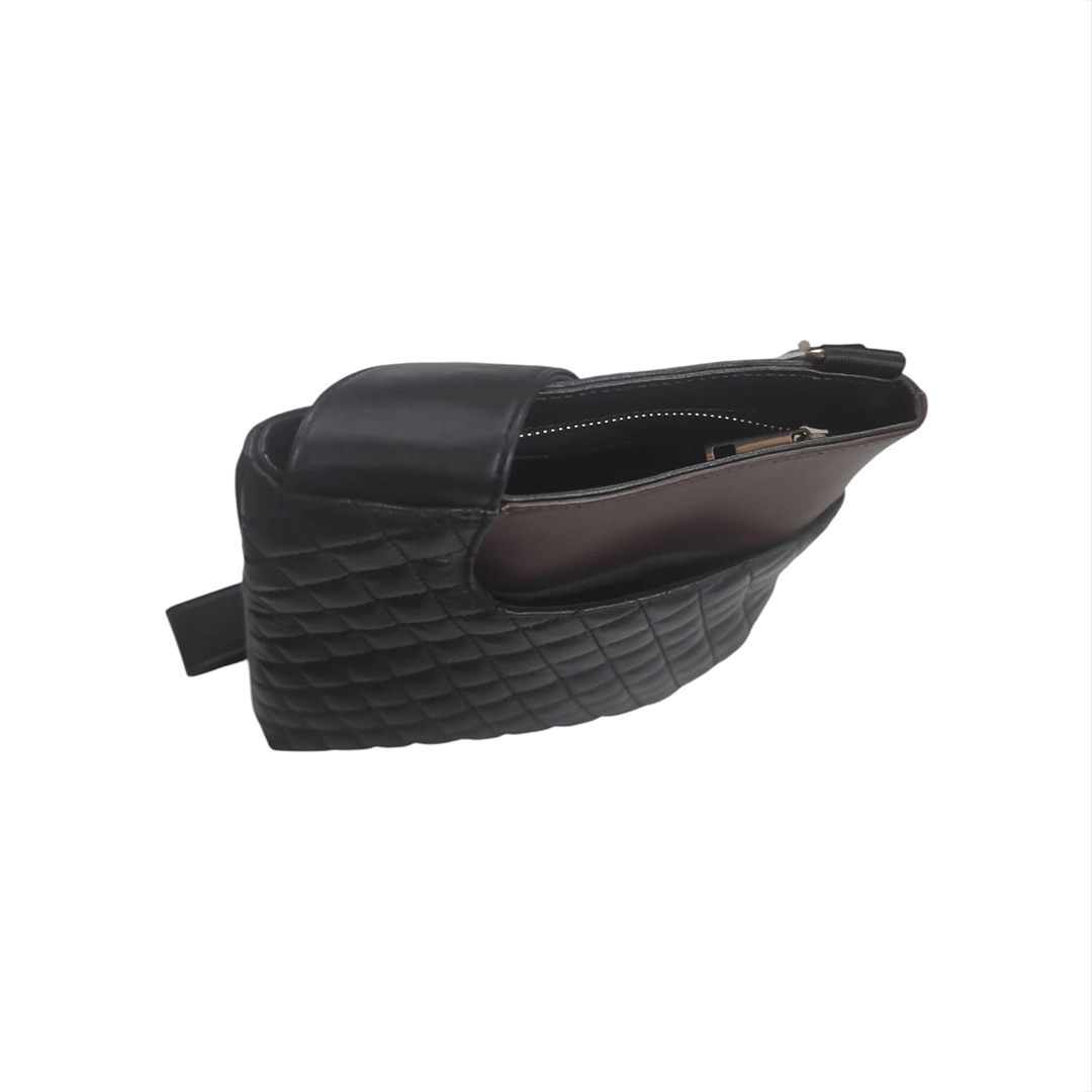 A sleek blend of style and practicality, the Midnight Quilted Crossbody Carry Bag is designed for modern, on-the-go living. Crafted with a soft quilted exterior, this bag features a sophisticated black finish accented by a subtle contrasting top panel for a refined touch. The spacious main compartment securely holds your everyday essentials, while the adjustable shoulder strap ensures comfortable wear throughout the day.